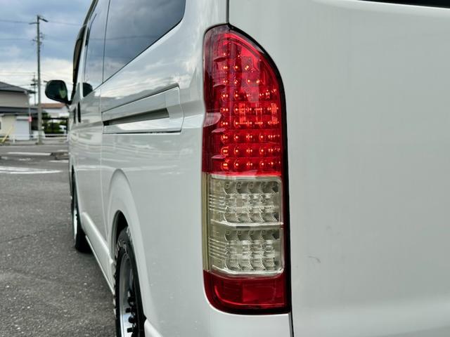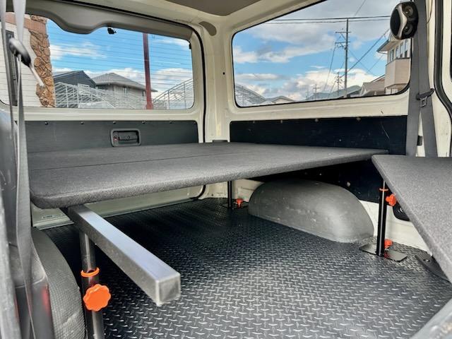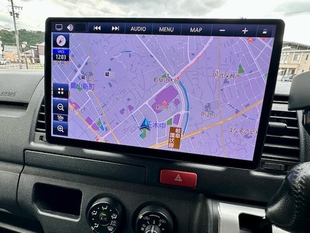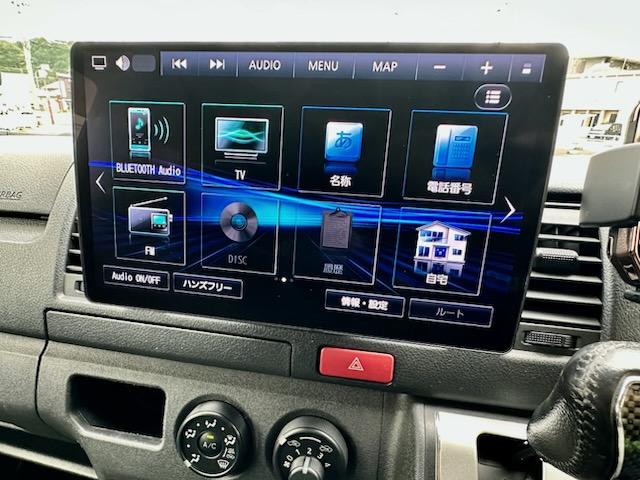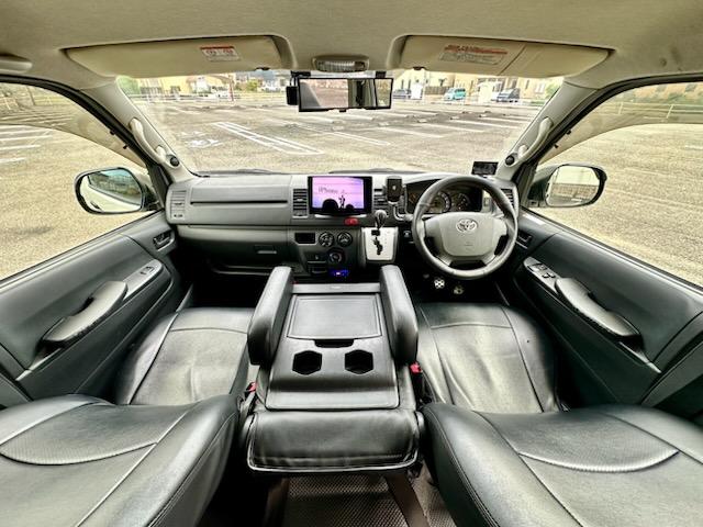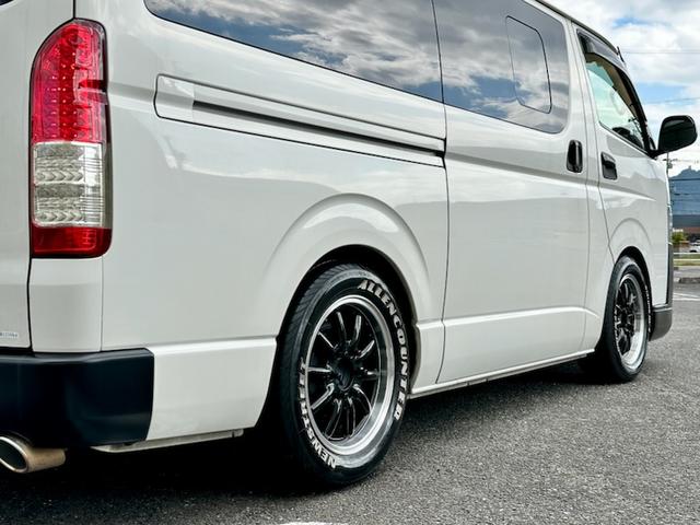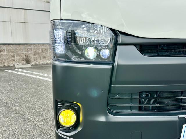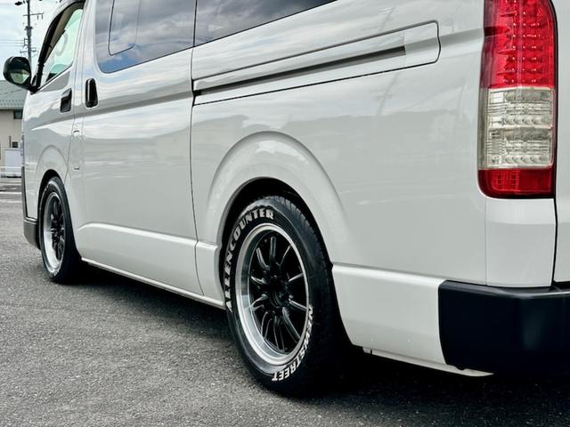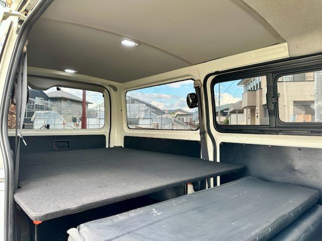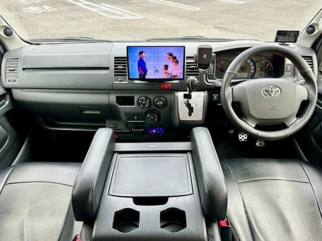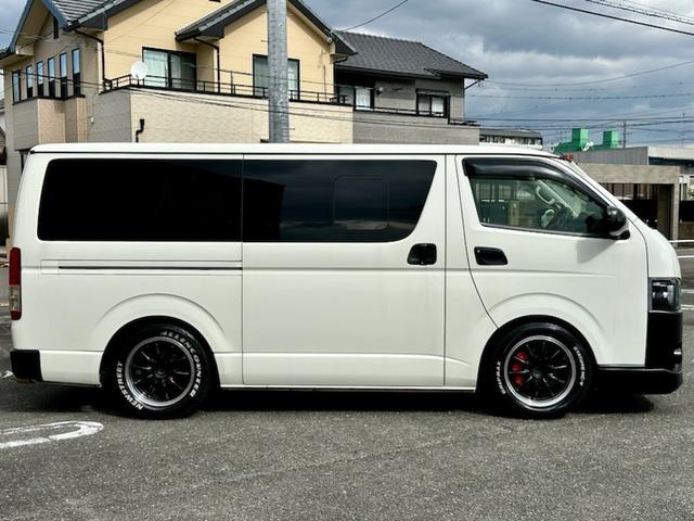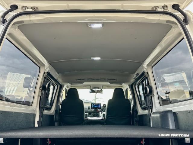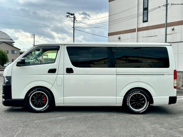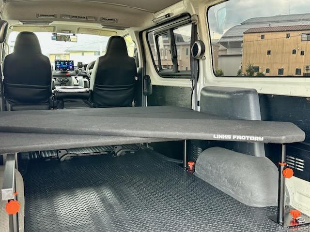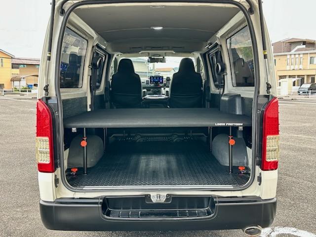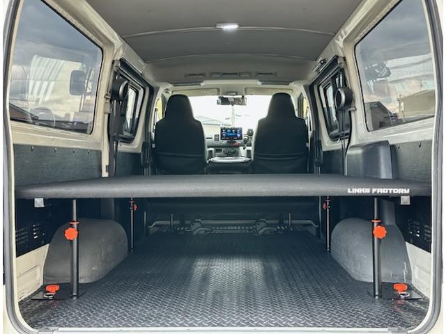 トヨタ ハイエースバンロングDX 5ドア 3.0ディーゼルターボ ローダウン 社外17AW ビッグナビ 社外ヘッドライト 社外LEDテール 前後ドラレコ レーダー探知機搭載 ベッドキット