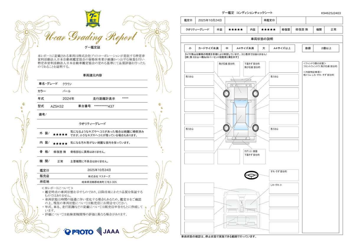 「新車保証付きです。保証継承実施いたします」 日本自動車協会鑑定済み。証明書ございます