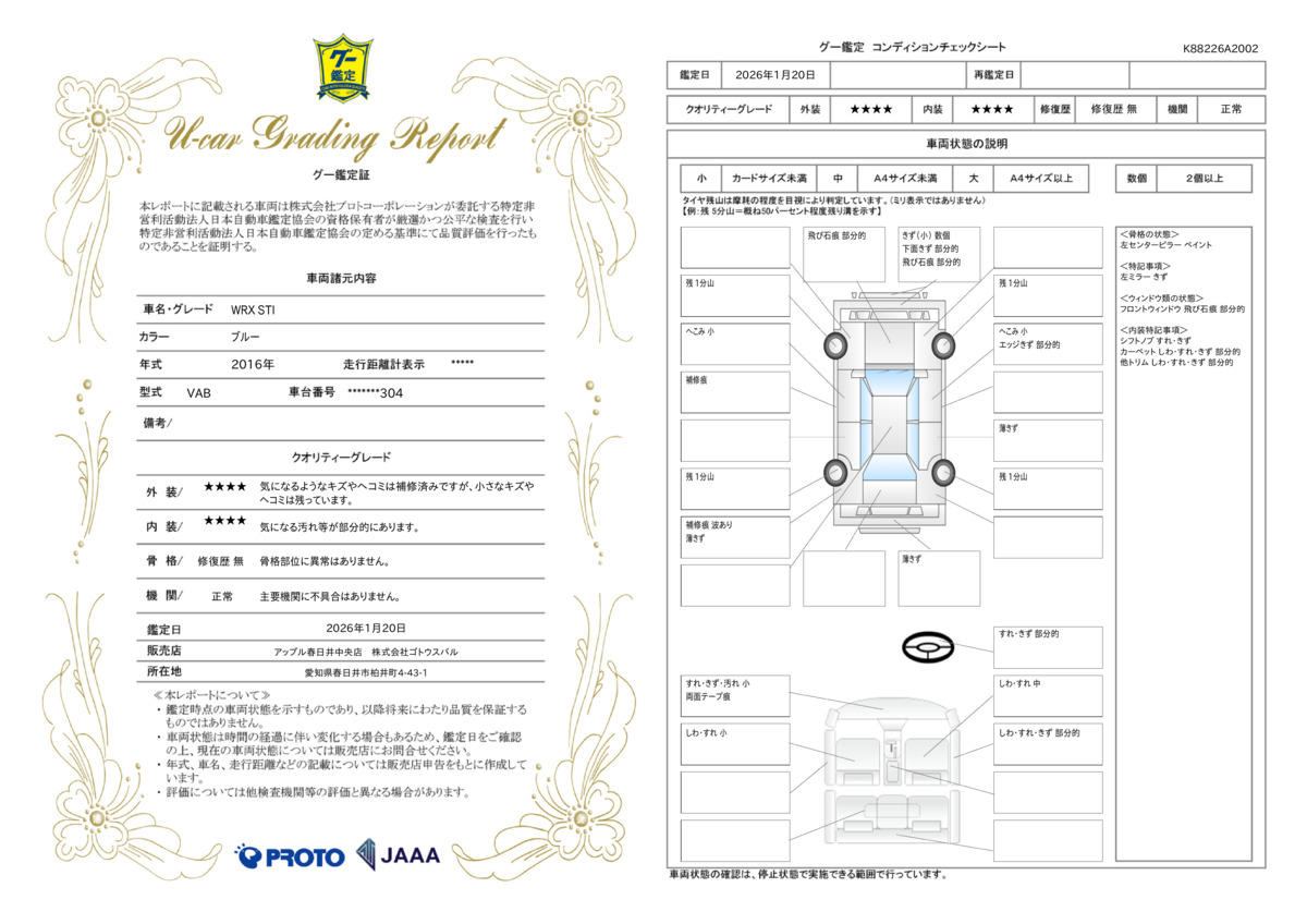 | 走行距離 | 6.1万km | 修復歴 | なし |