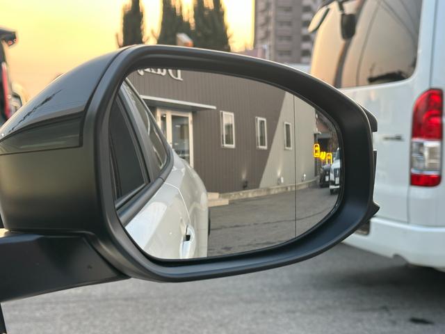 【ブラインドスポットモニター】ミラーに映らない死角に車両がいる場合、サイドミラーに設置されたマーカーが光って危険をお知らせします!他にも安全装置が多数装備されたおりますので、是非ご来店くださいませ!!