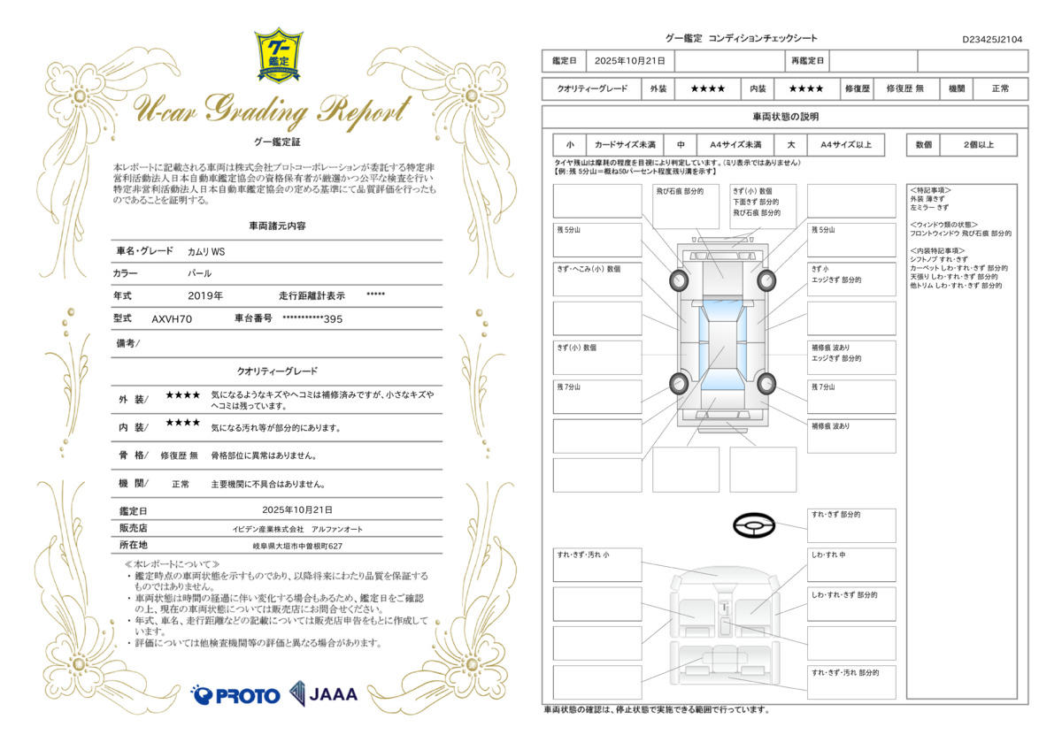 | 走行距離 | 7.8万km | 修復歴 | なし |