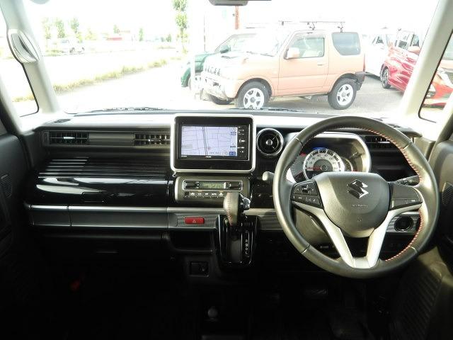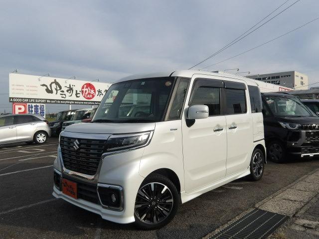 スズキ スペーシアカスタムハイブリッドXS 両側電動スライドドア シートヒーター コーナーセンサー アイドリングストップ 地デジ対応ナビ リアサーキュレーター リアロールサンシェード LEDオートヘッドライト ハーフレザーシート スマートキー