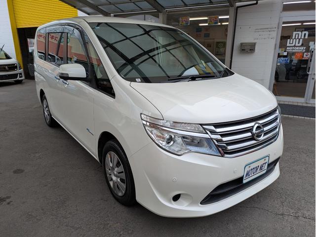 日産 セレナ20X S-ハイブリッドアドバンスドセーフティパック 純正SDナビ BTオーディオ ETC 全周囲・バックカメラ サイド・フロントカメラ USB入力端子 後席モニター 両側スライド片側電動 障害物センサー 衝突軽減ブレーキ 車線逸脱警報装置 オートライト