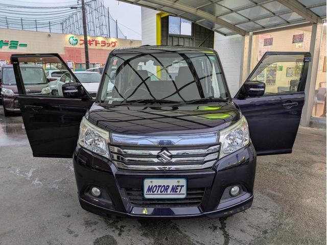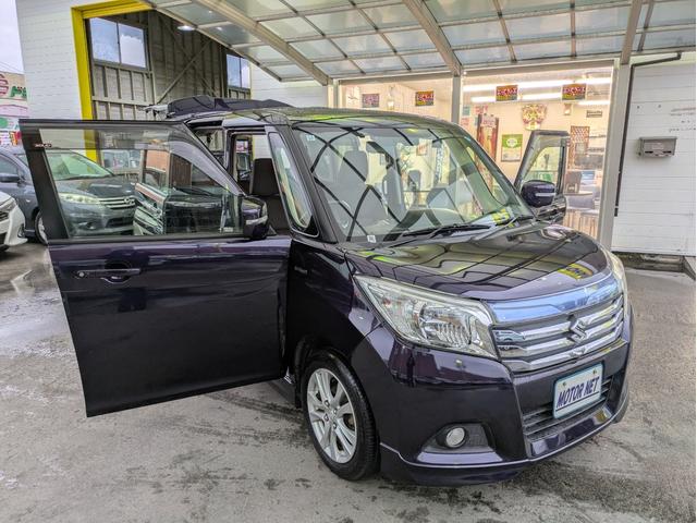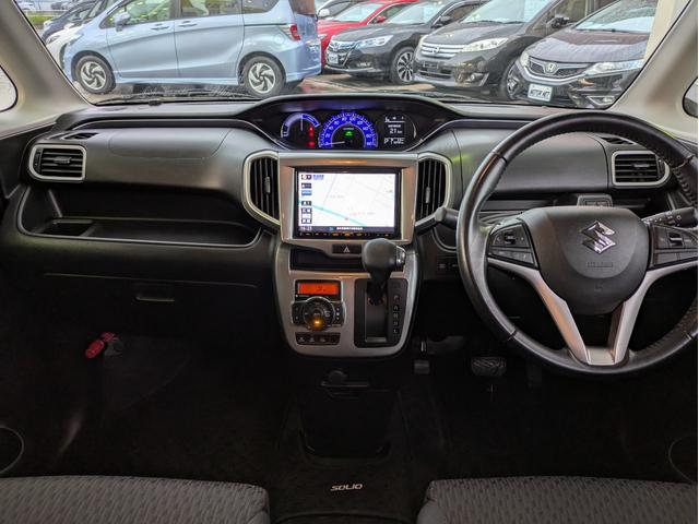 スズキ ソリオハイブリッドSZ 純正SDナビ BTオーディオ 後席モニター 全周囲・バックカメラ USB入力端子 ETC 両側電動スライドドア シートヒーター 衝突軽減ブレーキ 車線逸脱警報 オートライト HIDヘッドライト