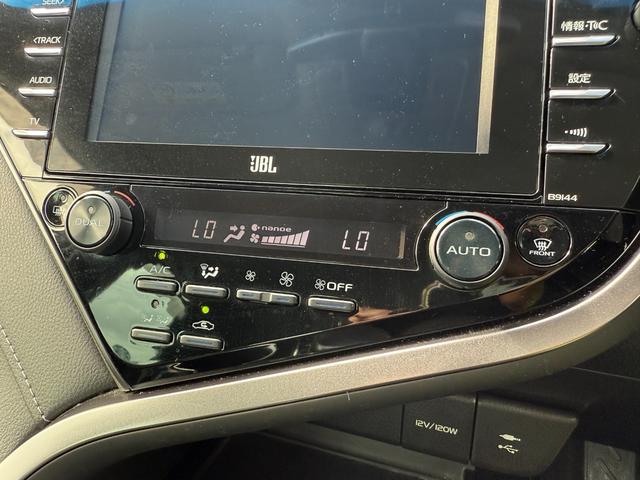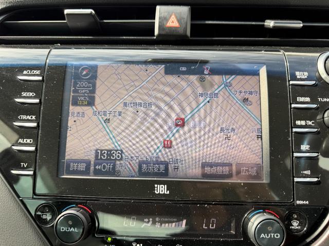トヨタ カムリWSレザーパッケージ TRDエアロ(F,S,R) バックカメラ 純正ナビ シートヒーター JBLサウンドシステム 黒革シート パワーシート LEDヘッドライト クルーズコントロール スカッフプレート プッシュスタート