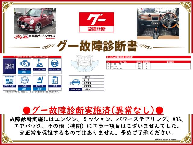 グー故障診断実施済み。エンジン・ミッション等、実施時には不具合となる箇所はございませんでした。必ず事前に内容をご確認下さい。※恒久的な正常を担保するものではありません。