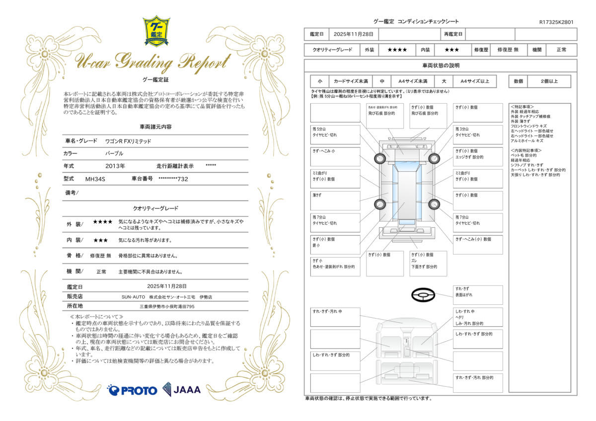 当店では全車両に【グー鑑定】を実施しております♪修復歴やキズのチェックをおこない、お客様の不安を1つでも取り除けるよう努力しております♪♪