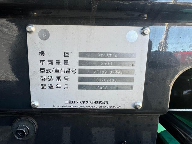 三菱 三菱 フォークリフト・型式FD15T14・燃料タイプディーゼル(軽油)・最大荷重1.5t・最大揚高3.0m・マストの種類2段