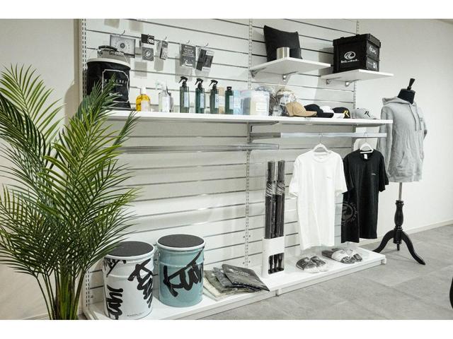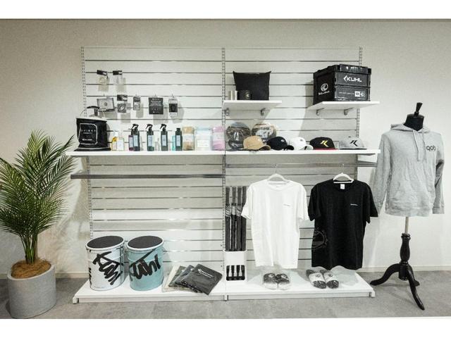 KUHLオリジナルブランド906(キューマルロク)グッズも多数展示。こだわりの車をさらにかっこよくするアイテムや、アパレルまで、幅広く展開しております。