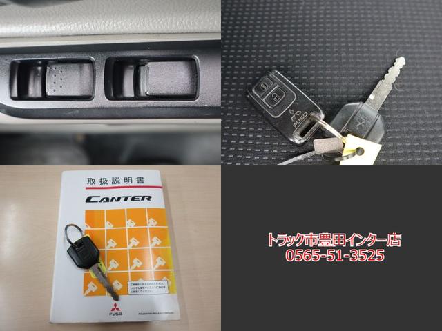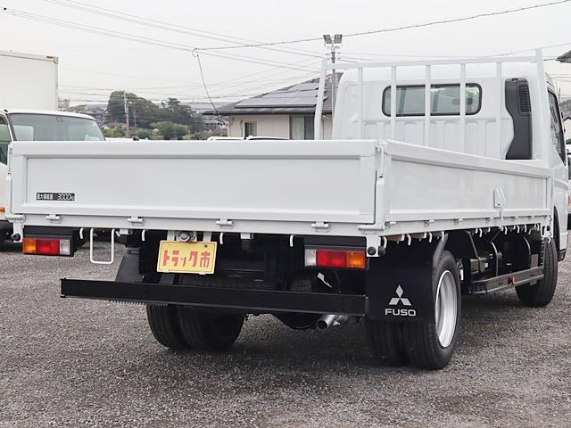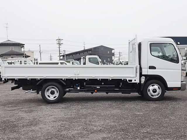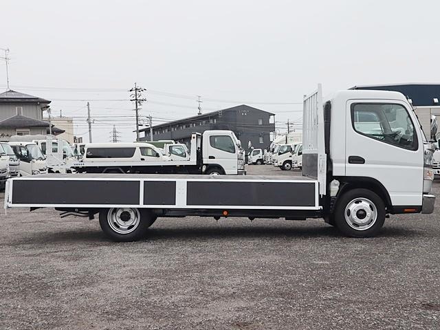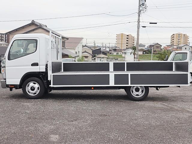三菱ふそう キャンター平ボディ 積載3t ワイドロング 全低床 広幅荷台 LDWS ETC キーレス 車両総重量5945Kg 4P10ターボ150馬力 荷台地上高約96cm 荷台床板張替済 外装仕上済 同色NEWペイント 取説 スペアキー フロアマット・サイドバイザー