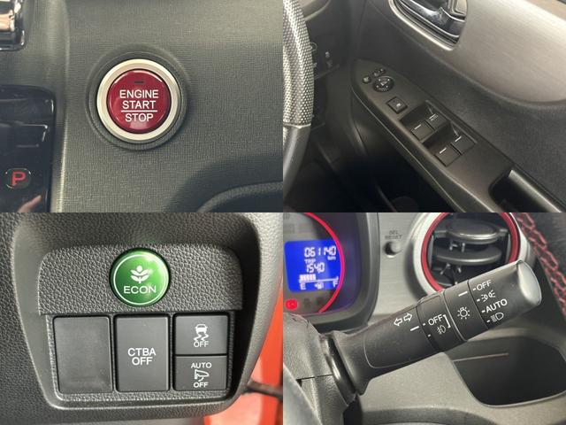 快適4機能を紹介します!左上ボタン一つでエンジンが始動します!左下ECONスイッチです。クルマ全体の動きを低燃費モードになります♪右下オートライトも装備しているんです!暗くなったら、自動でライトON!