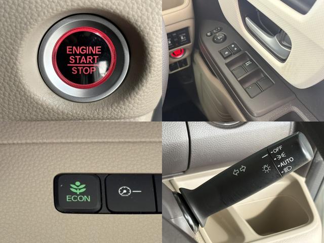 快適4機能を紹介します!左上ボタン一つでエンジンが始動します!左下ECONスイッチです。クルマ全体の動きを低燃費モードになります♪右下オートライトも装備しているんです!暗くなったら、自動でライトON!