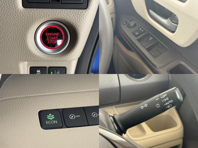 快適4機能を紹介します!左上ボタン一つでエンジンが始動します!左下ECONスイッチです。クルマ全体の動きを低燃費モードになります♪右下オートライトも装備しているんです!暗くなったら、自動でライトON!