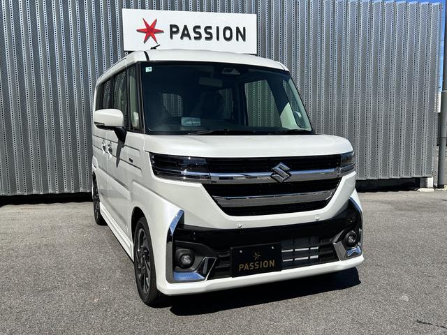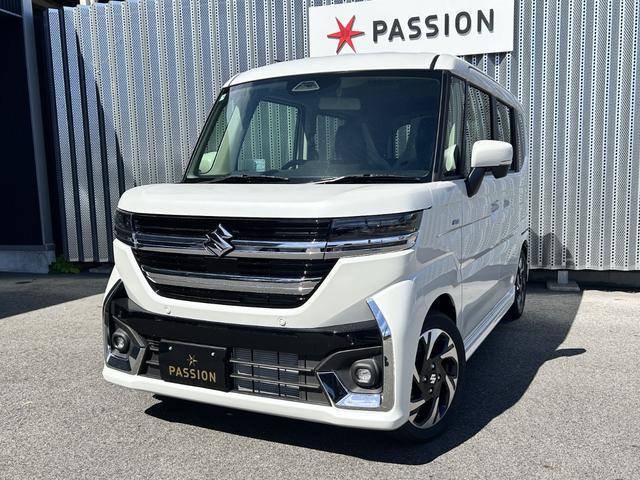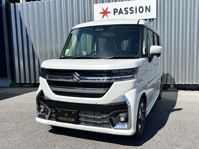 スズキ スペーシアカスタムハイブリッドXSターボ 届出済未使用車 両側電動スライドドア 衝突被害軽減ブレーキ コーナーセンサー スマートキー アダクティブクルーズコントロール アイドリングストップ 電動格納ドアミラー LEDヘッドライト ターボ