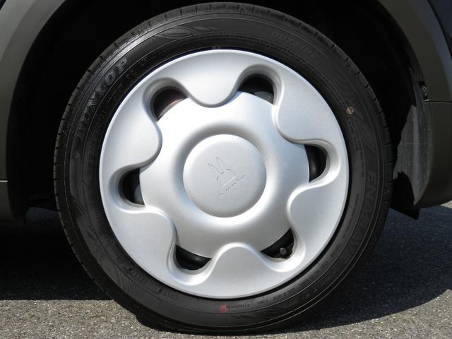 フルホイールキャップ仕様の14インチ、スチールホイールを搭載しています。「155/65R14」サイズのタイヤが装着されています。