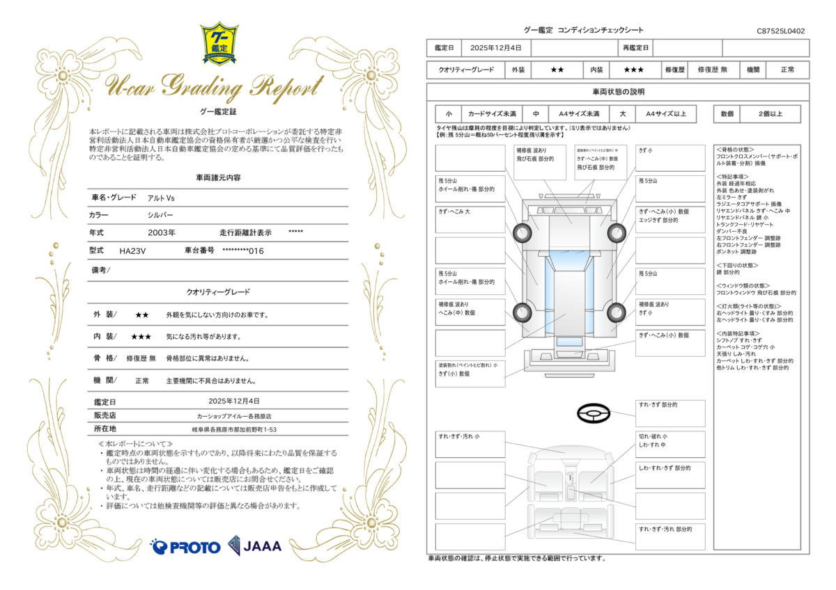 | 記録簿 | ー | 輸入認定中古車 | ー |