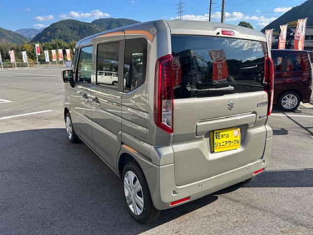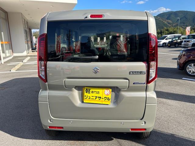 スズキ スペーシアハイブリッドG アイドリングS キーレススタートシステム コーナーソナー Wエアバッグ ブレーキサポート 横滑り防止システム LEDライト フルフラット 盗難防止装置 スマートキー オートエアコン ベンチシート