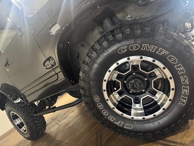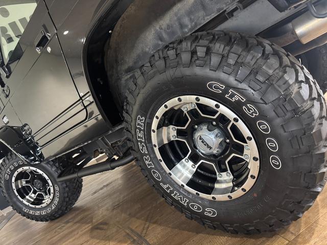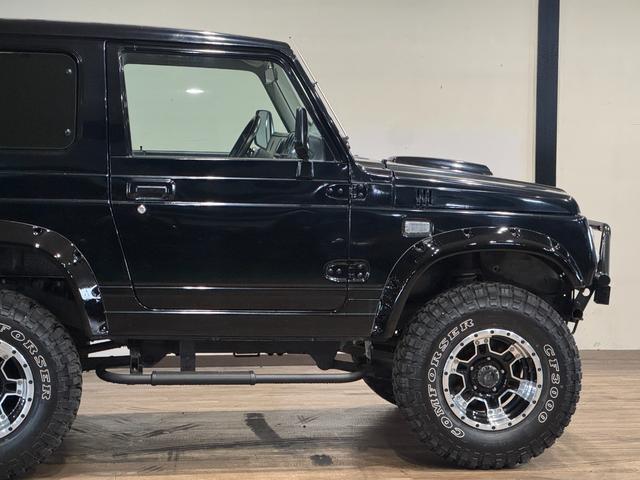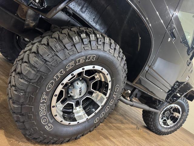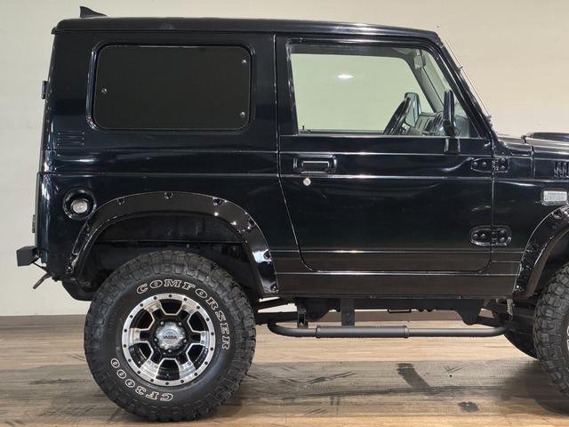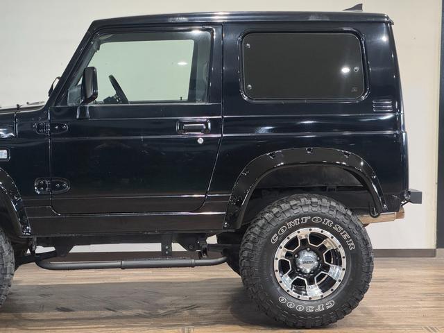 スズキ ジムニーワイルドウインド ブラックカラー 4WD車両 5速MT車両 D1SPECステアリング 1DINオーディオ COMFORSER MTタイヤ 社外マフラー オーバーフェンダー