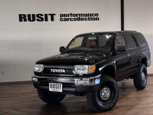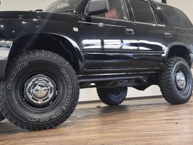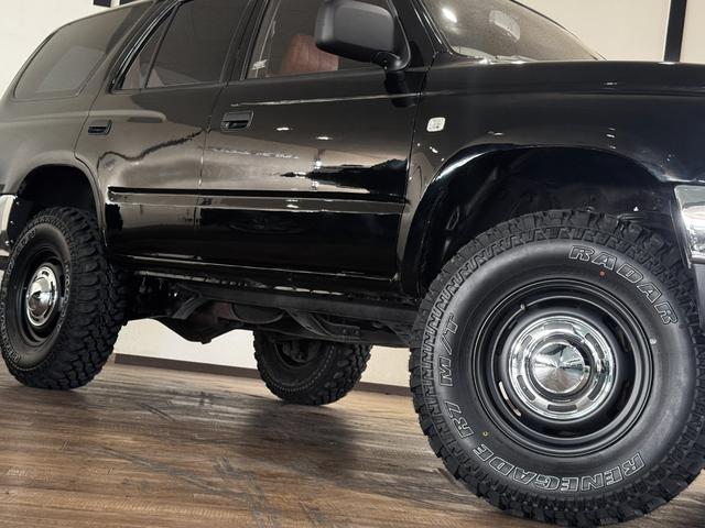 トヨタ ハイラックスサーフSSR-X ブラックカラー全塗装済み リフトアップ済み ブラウンシートカバー 4WD車輌 TOYOTAエンブレム 前後メッキバンパー RENEGADE新品タイヤ メッキグリル 社外ナビ
