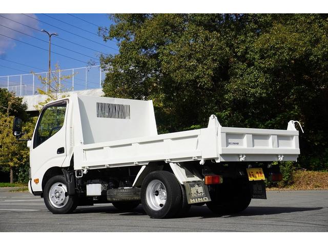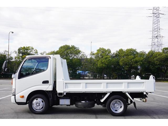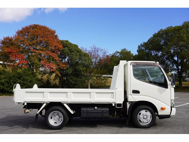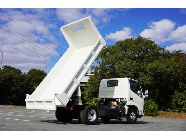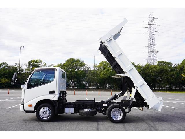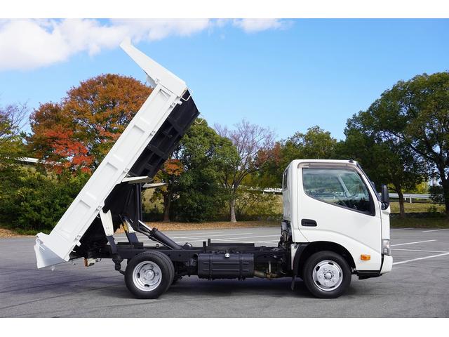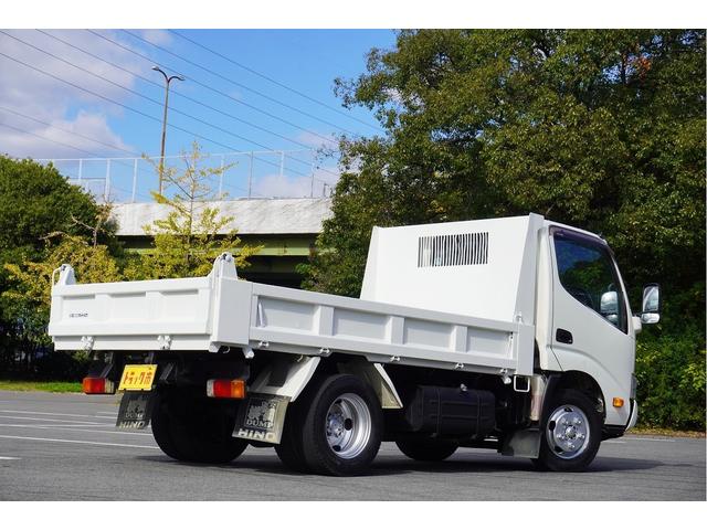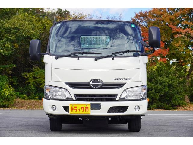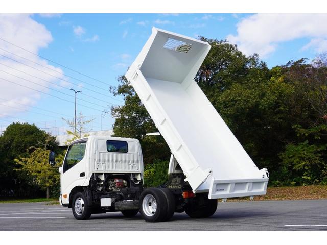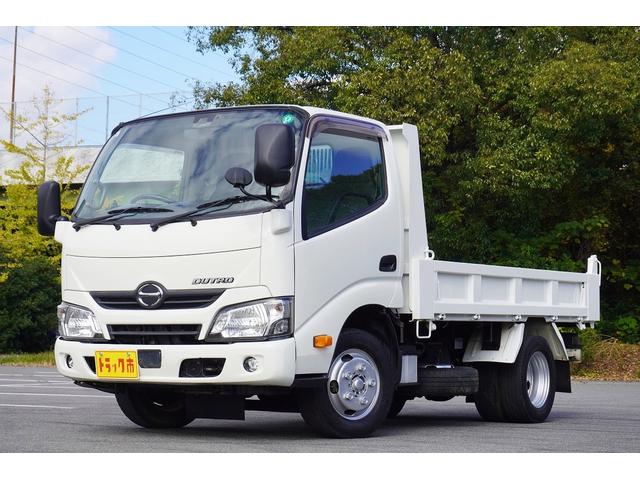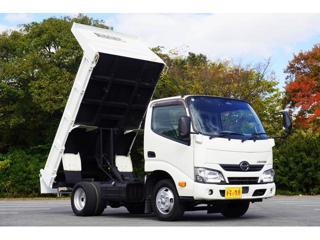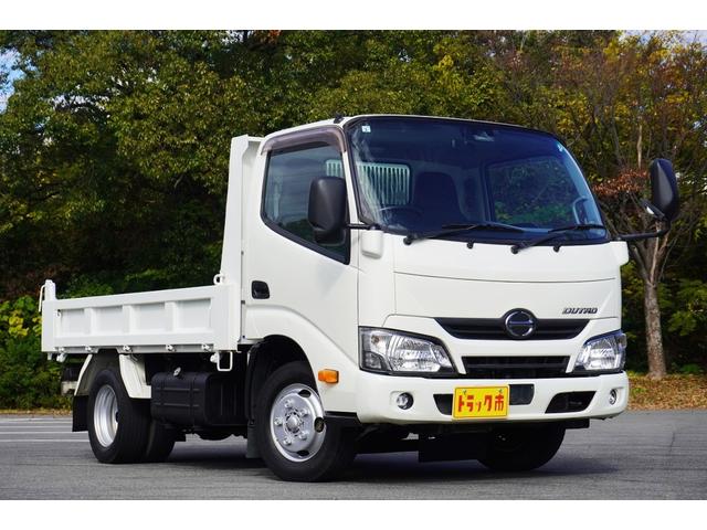日野 デュトロ2t ダンプ 強化 フルジャストロー 全低床 坂道発進補助 横滑り防止 レーダーブレーキ 車線逸脱防止 左電格ミラー エコモード アイドルアップ ETC 集中ロック 新明和 荷台内寸305/159/32 荷台高83 車両総重量4835kg