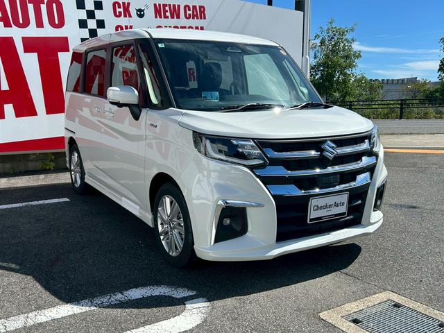 スズキ ソリオハイブリッドMZ スズキセーフティサポート 両側ワンアクションパワースライドドア LEDヘッド・フォグランプ アダプティブクルーズコントロール 電動パーキングブレーキ ロールサンシェード 本革巻ステアリングホイール