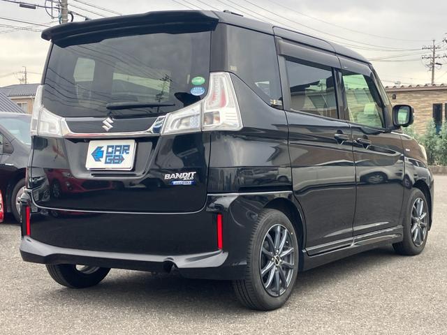 スズキ ソリオバンディットハイブリッドMV クルーズコントロール・衝突軽減ブレーキ・横滑り防止装置・アイドリングストップ・レーンキープアシスト・両側スライド片側電動スライド・バックカメラ・フルセグTV・Bluetooth・CD・DVD