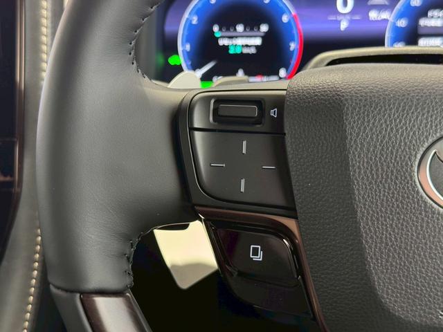 ステアリング右側スイッチ、センターメーター内の情報を確認するためのボタンとレバーがついています。下には車線逸脱装置のスイッチとソナーのスイッチがついています。直感で操作しやすいボタン配置になってます