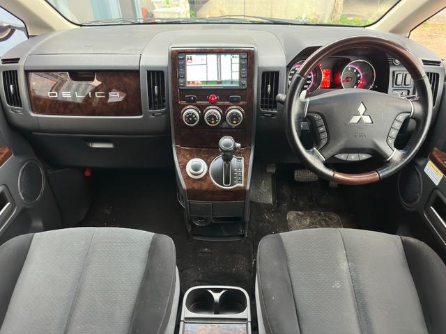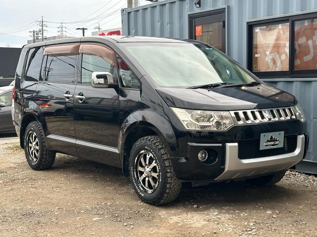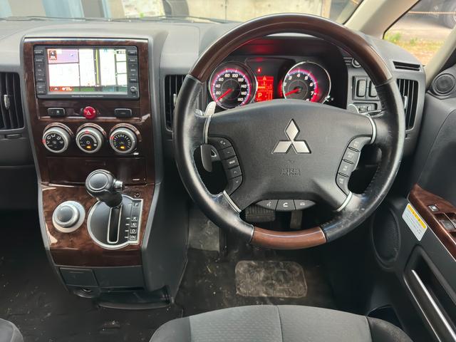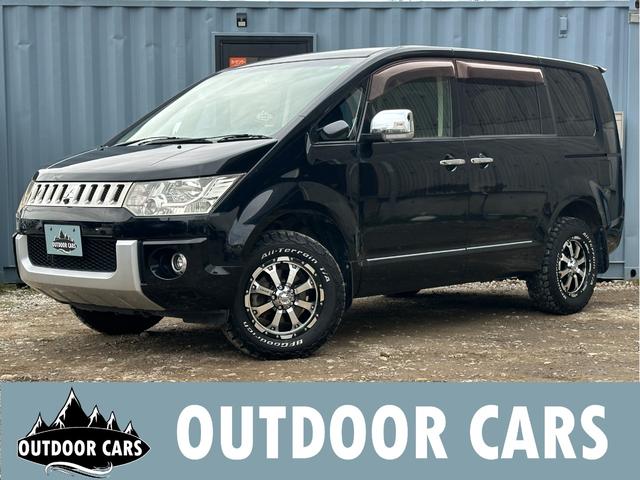三菱 デリカD:5シャモニー HDDナビ・3方向カメラ・フルセグTV・両側電動スライド・ETC・クルコン・コンビハンドル・BFグッドリッチオールテレーンホワイトレター・MKWホイール・スマートキー・シートH・木目パネル・4WD
