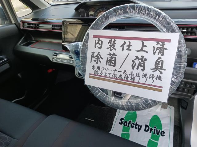 ハンドル廻り、スイッチ、ドアノブなど手の触れる部分も徹底的に除菌!ご納車前も再度除菌清掃いたしますの