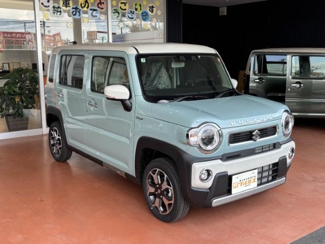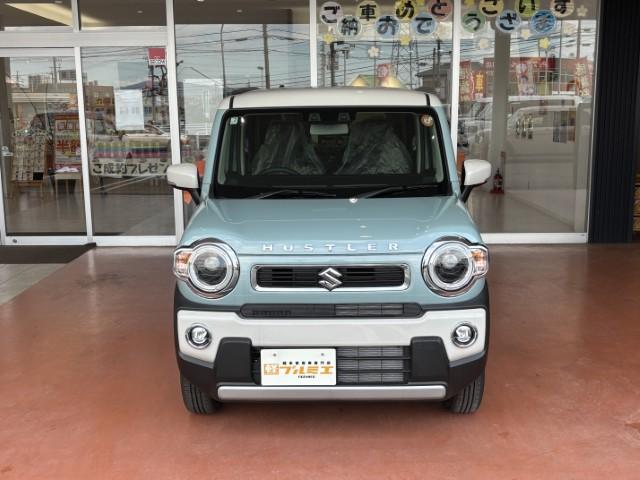 スズキ ハスラーハイブリッドX 届出済未使用車 デュアルカメラブレーキ LEDヘッド LEDフォグ 前席シートヒーター オートエアコン オートライト スマートキー プッシュスタート アイドリングストップ 軽自動車