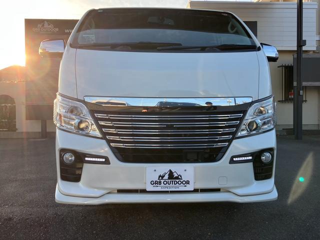 日産 NV350キャラバンバンロングライダープレミアムGXプロ・スタイルパッケージ ナビTV/Bモニター/ETC/アラウンドビューモニター/エマージェンシーブレーキ/パワースライドドア/インテリジェントキー/ベッドキット/LEDヘッドライト/サイドバー/純正アルミ/サイドバイザー