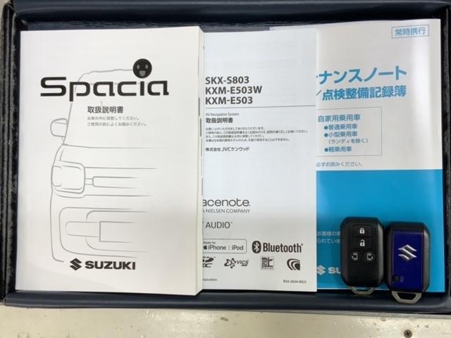 スズキ スペーシアハイブリッドX 2トーン 最長5年保証 8inchナビ TV BTオ-ディオ DVD 衝突軽減ブレーキ シ-トヒ-タ- ETC LEDライト 両側電動ドア 横滑り防止 スマ-トキ- 盗難防止装置 整備記録簿