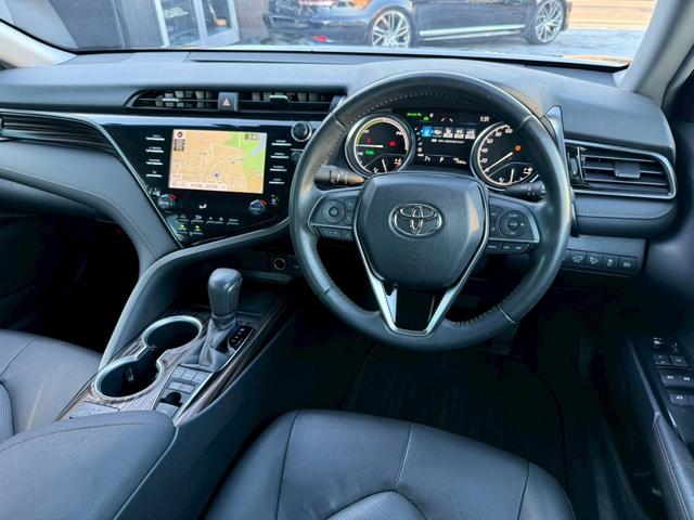トヨタ カムリGレザーパッケージ 禁煙車 黒革シート レーダークルーズコントロール ブラインドスポットアシスト パワーシート シートヒーター メーカー純正ディスプレイオーディオ バックモニター フルセグTV Bluetooth ETC