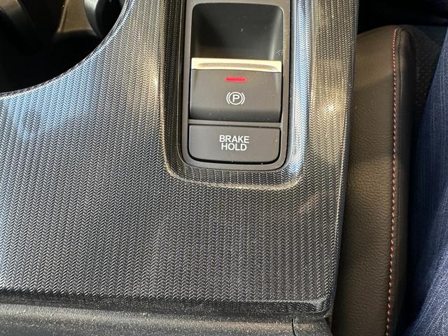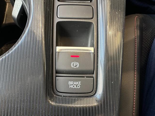 《ブレーキホールド機能》が付いています。停車時ブレーキペダルを踏み続けなくても、自動的にブレーキを保持する機能です。アクセルペダルを操作すると、自動でブレーキが解除され発進することができます。
