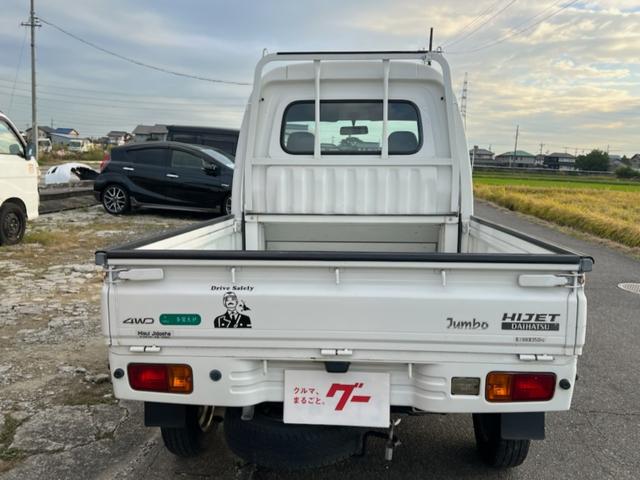 ダイハツ ハイゼットトラックジャンボ 4WD(パートタイム)/純正CD・CSプレイヤー/AT車/パワステ・パワーウインド/修復歴無し/車検R9年3月まで。