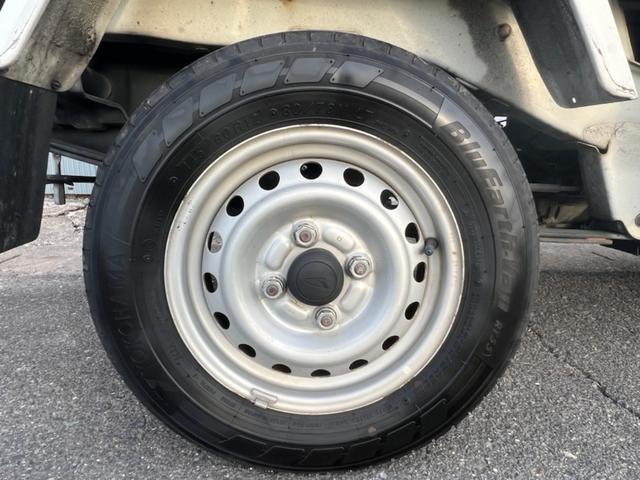 左前タイヤ。純正12インチスチールホイール。
