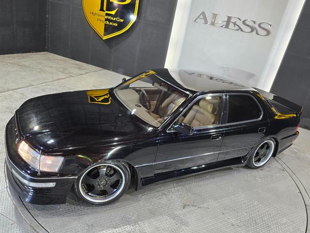 トヨタ セルシオB仕様 当時仕様カスタム フルエアロ ファブレス18インチ 車高調 リアウィング ビレットグリル ベージュ革シート クリアウィンカー ポータブルナビ