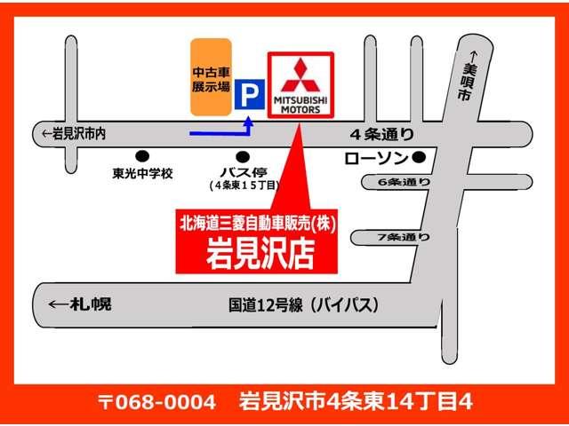 【マップ】北海道三菱自動車販売(株)岩見沢店は、4条通り沿いにあります!札幌方面からお越しの際は国道12号線から4条通りを左折し右手にお店があります!