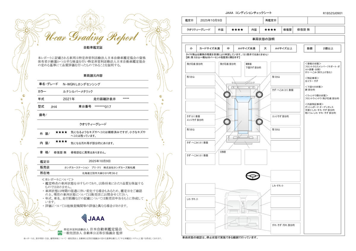| 走行距離 | 2.1万km | 修復歴 | なし |
