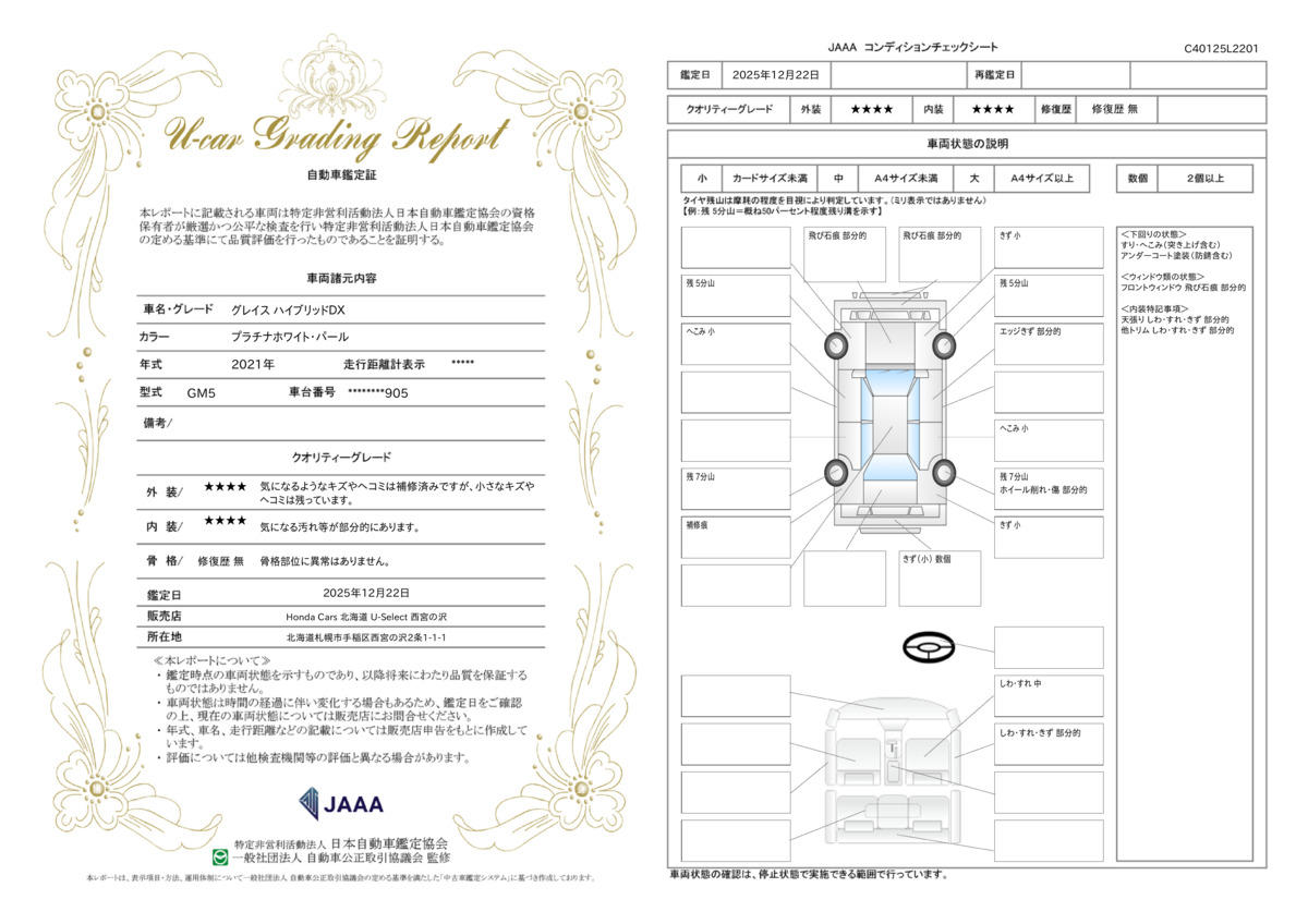 | 走行距離 | 1.9万km | 修復歴 | なし |