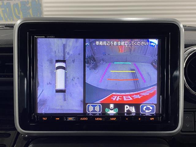 スズキ スペーシアハイブリッドX 2年車検(付)・デュアルセンサーブレーキS・純正8インチナビ・TV・CD/DVD/BT・Bカメラ・全方位モニター・シートヒーター・ETC・キーレススタート・Wパワスラ・ハーフレザーシート
