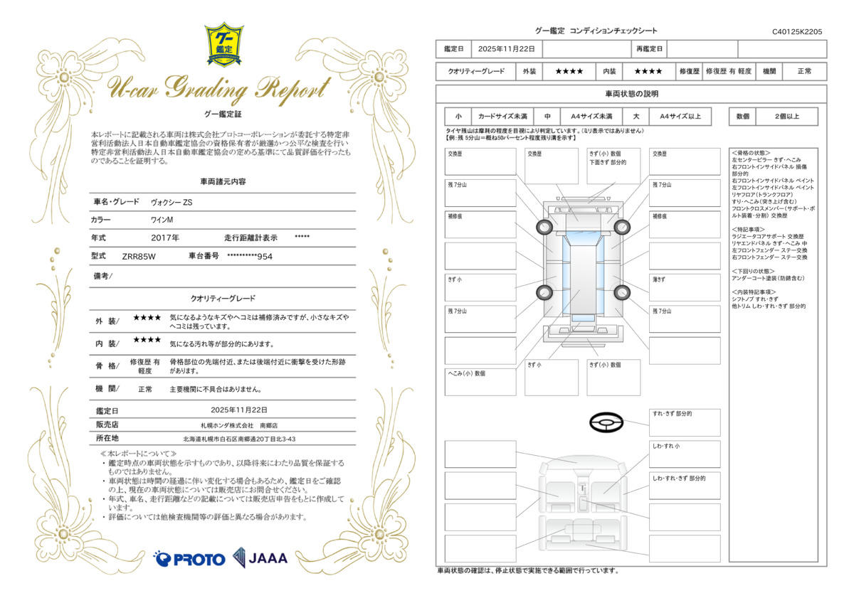 | 走行距離 | 4.8万km | 修復歴 | あり |