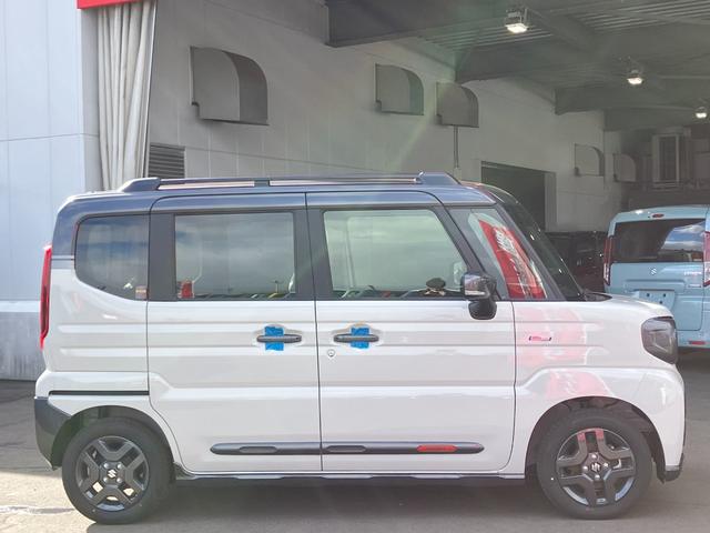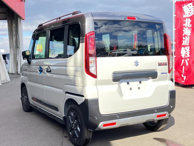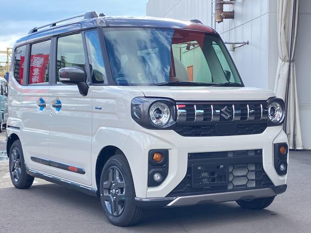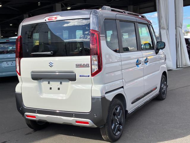 スズキ スペーシアギアハイブリッドXZ 届出済み未使用車 デュアルセンサーブレーキサポートII 両側電動スライドドア イージークローザー スマートキー マイルドハイブリッド アダプティブクルーズコントロール ルーフレール 4WD