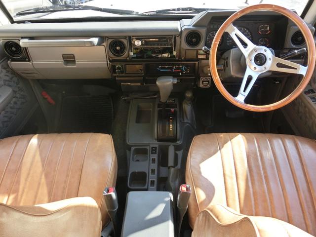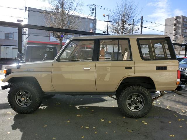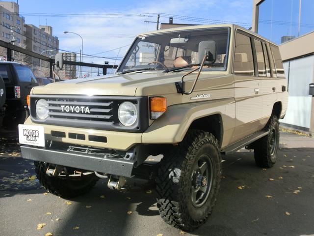 トヨタ ランドクルーザー70ZX サンルーフ・ルーフキャリア・リフトアップ・社外AW・BFグッドリッチATタイヤ・TOYOTAグリル・丸目ライト・前後バンパー・ウッドステアリング・ブラウン調シートアバー・本州仕入