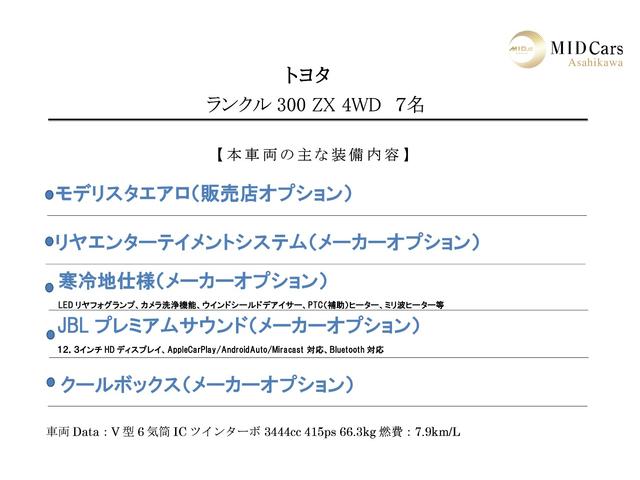 トヨタ ランドクルーザーZX モデリスタ前後/リアエンター/JBL/寒冷地仕様/クールボックス/サンルーフ/パノラミックビューモニター/ルーフレール/シートクーラー&ヒーター/ステアリングヒーター/トヨタセーフティ/純正ナビ&TV