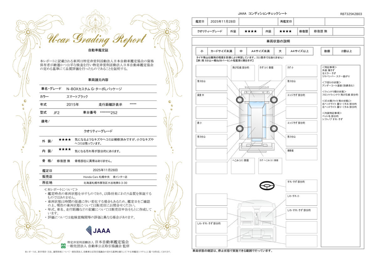| 走行距離 | 3.2万km | 修復歴 | なし |