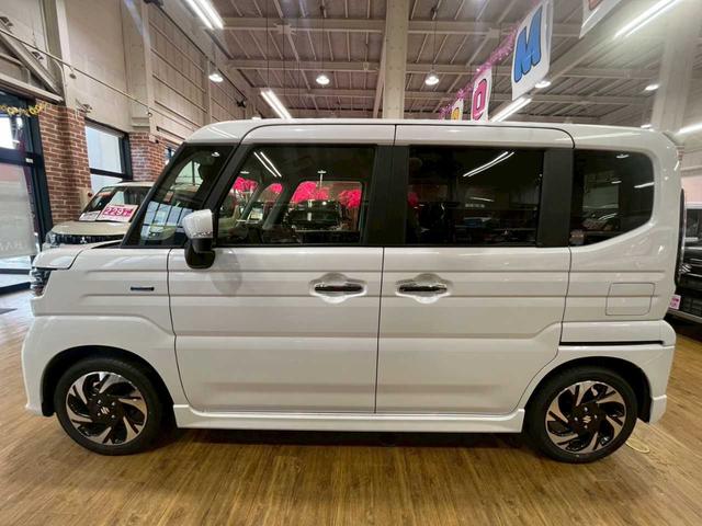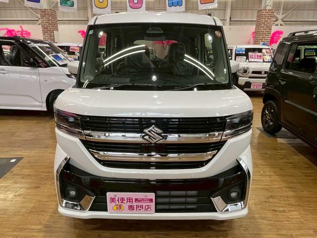 スズキ スペーシアカスタムハイブリッドXS 4WD 運転席・助手席側パワースライドドア ABS アイドリングストップ 運転席・助手席シートヒーター 衝突被害軽減システム LEDヘッドライト スマートキー プッシュスタート オートライトシステム