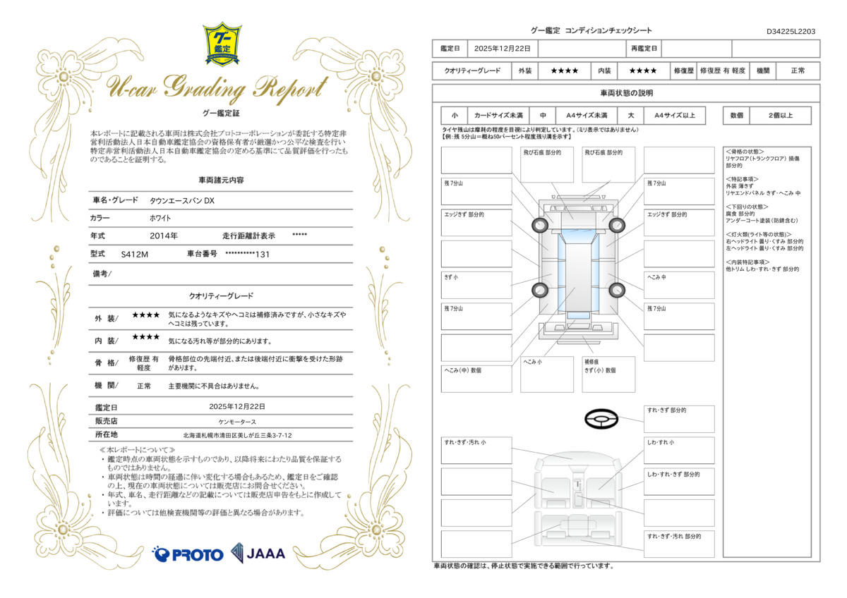 | 走行距離 | 17.1万km | 修復歴 | あり |