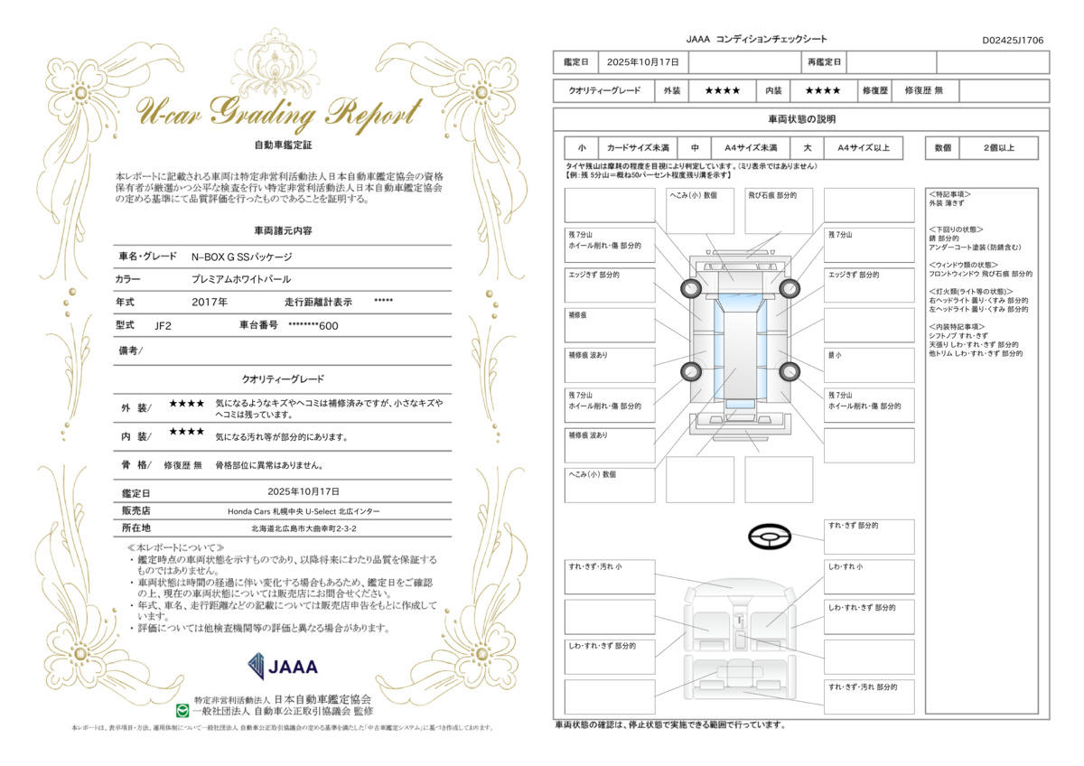 | 走行距離 | 1.7万km | 修復歴 | なし |