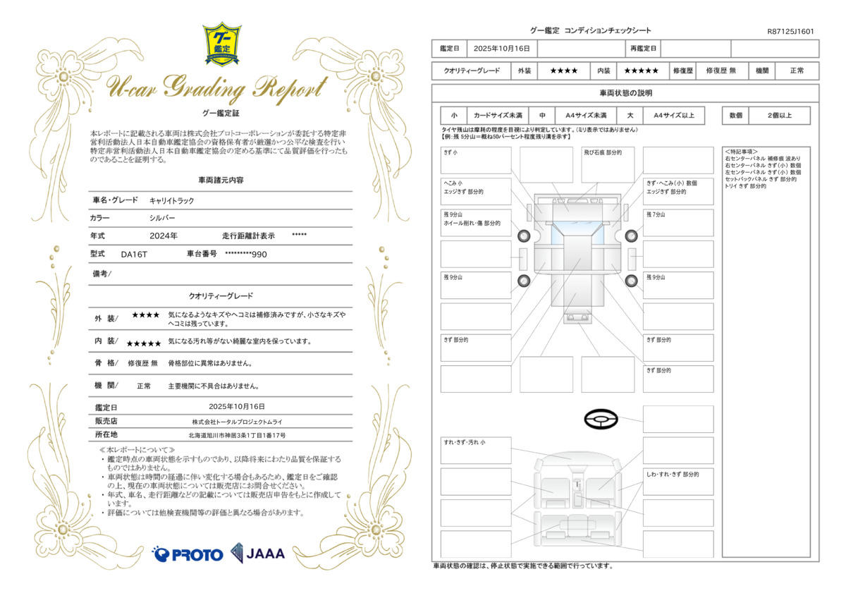 走行距離 | 1.6万km | 修復歴 | なし |